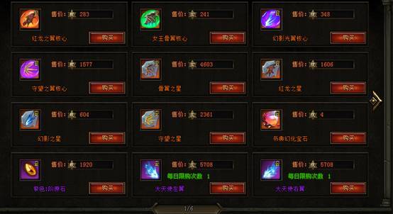 积分兑换奖励内容:惊喜盒子(有概率开出各种翅膀核心,强力属性丹,进阶道具材料,符文,护符成长材料等)