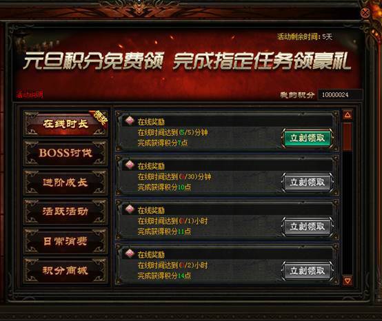 1. 在线奖励:通过累积在线即可获取对应积分