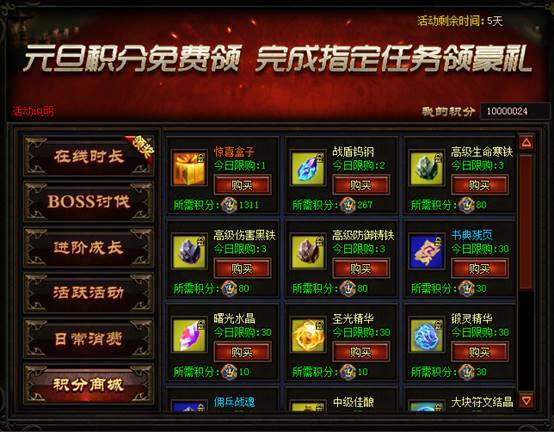 2. BOSS讨伐:击杀指定数量的公共BOSS即可获取对应积分