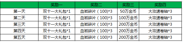 每日累积充值满100钻石,1000钻石均可领取1次双十一充值好礼。